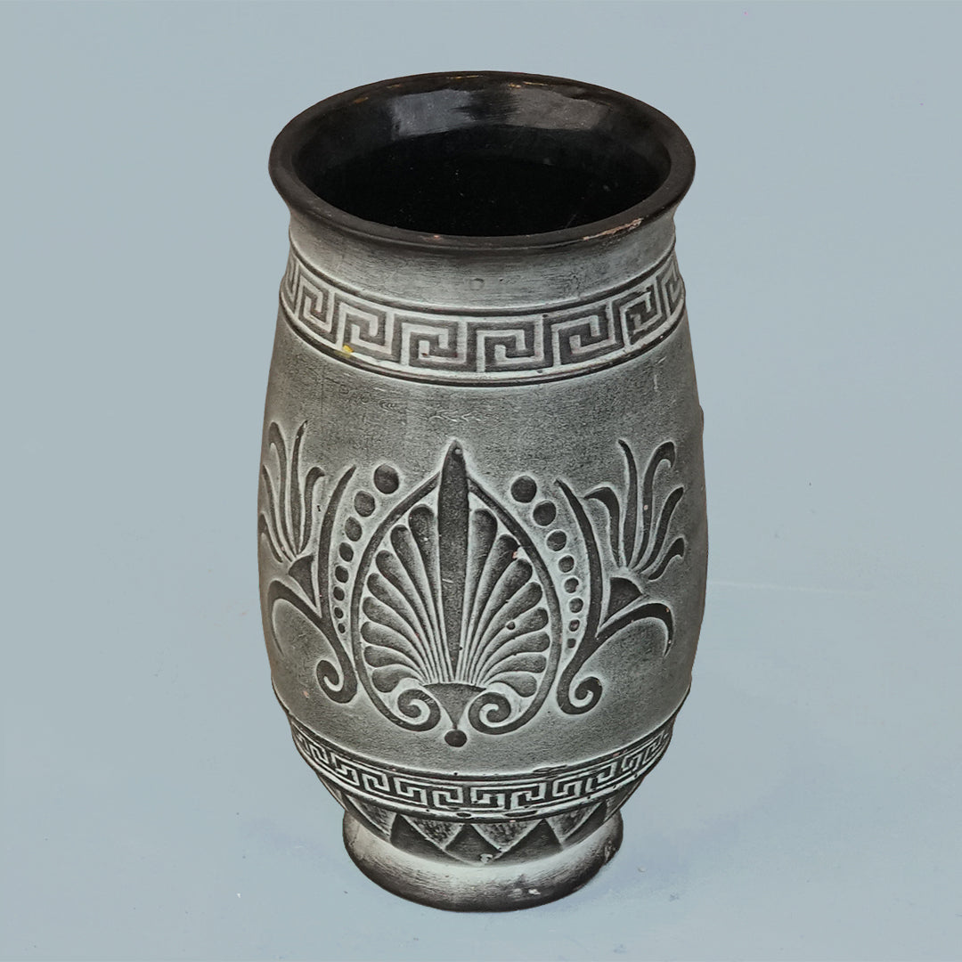 We Sell What We Show Acquire this Royal Collection piece with total assurance, knowing the precise dimensions and intricate relief patterns are verified against our guarantee. This classic vessel resolves common buyer anxieties regarding online quality by delivering a high-fidelity, ancient aesthetic featuring traditional Greek key (meander) borders and floral palmette engravings. The weathered, stone-like texture lends an immediate air of profound elegance to any mantelpiece, side table, or luxury entryway.
